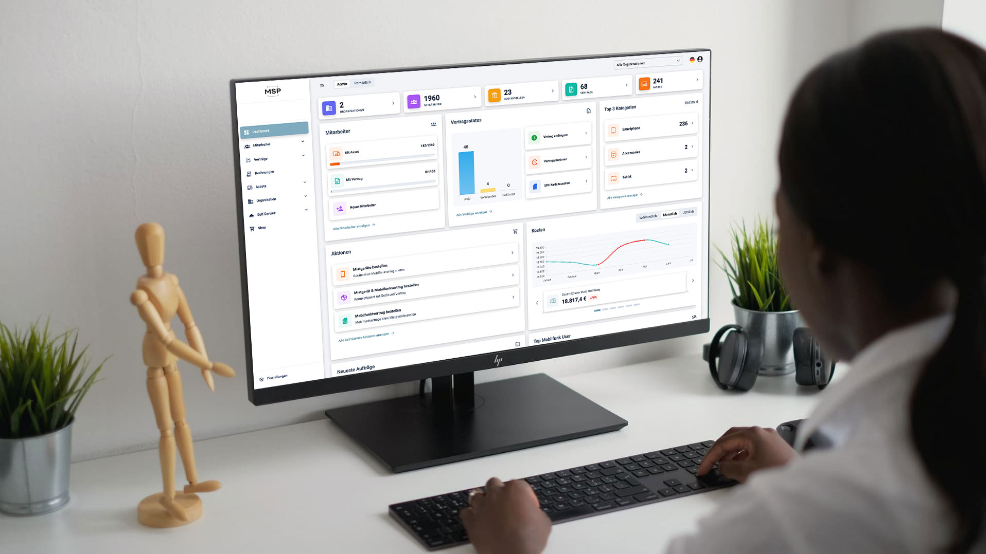 MSP verbindet ein professionelles Managed Service Tool mit modernen 24/7-Self-Service-Funktionen. Prozesse im Vertrags-, Rechnungs- und Assetmanagement lassen sich sofort per Self-Service auslösen. Gleichzeitig steht der bewährte Managed Service von MOBEX mit persönlichen Ansprechpartnern weiterhin als professionelle Unterstützung bereit.