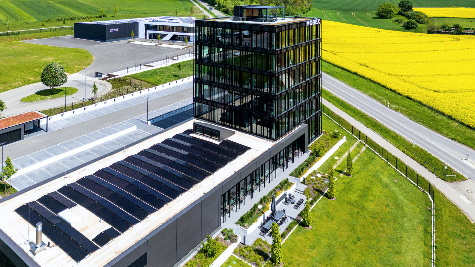 MOBEX legte großen Wert auf ein zukunftsfähiges Energiekonzept. Für die Klimatisierung, Heizung und Kühlung der Räume sorgt eine moderne Luft-Wärmepumpenanlage. Ergänzt wird die technische Gebäudeausstattung durch eine leistungsstarke Photovoltaikanlage, die den gesamten Energiebedarf deckt – einschließlich der Versorgung der firmeneigenen PKW-Ladestationen. Der Neubau erreicht so eine vollständige Versorgung aus erneuerbaren Energien und setzt einen klaren Standard für umweltbewusstes, verantwortungsvolles Bauen mit Signalwirkung über die Region hinaus. Dieses Energiekonzept ist nicht nur ein Beitrag zur Klimaneutralität, sondern auch ein klares Bekenntnis von MOBEX zu nachhaltigem Wachstum, das ökologische Verantwortung und unternehmerische Zukunftsfähigkeit vereint.