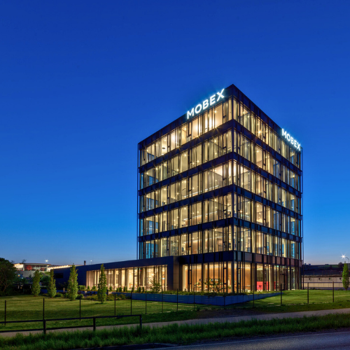 Nach einer knapp dreijährigen Planungs- und Bauzeit ist MOBEX Ende 2022 in die neue Firmenzentrale auf dem Nagolder Eisberg eingezogen. Der markante Neubau bietet auf einer Gesamtfläche von 7.300 Quadratmetern rund 2.800 Quadratmeter Nutzfläche und wurde im Mai 2023 offiziell eingeweiht.